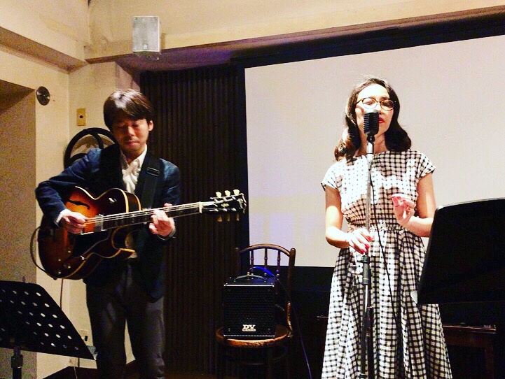 演奏は、ギタリストの中根一城さんにお願いしました。自分でも驚いたのですが、実は今年初めての共演で、実は半年くらい期間が空いてました。「期間が空いてて、音の先入観なく逆に新鮮で良かったですね」なんてお話しましたが、リハをやっても本番はその時の気分で音を発する私達なので(笑)神待ちというか、ムード待ちというか。その場のノリで、いい感じにやらせていただきました。
